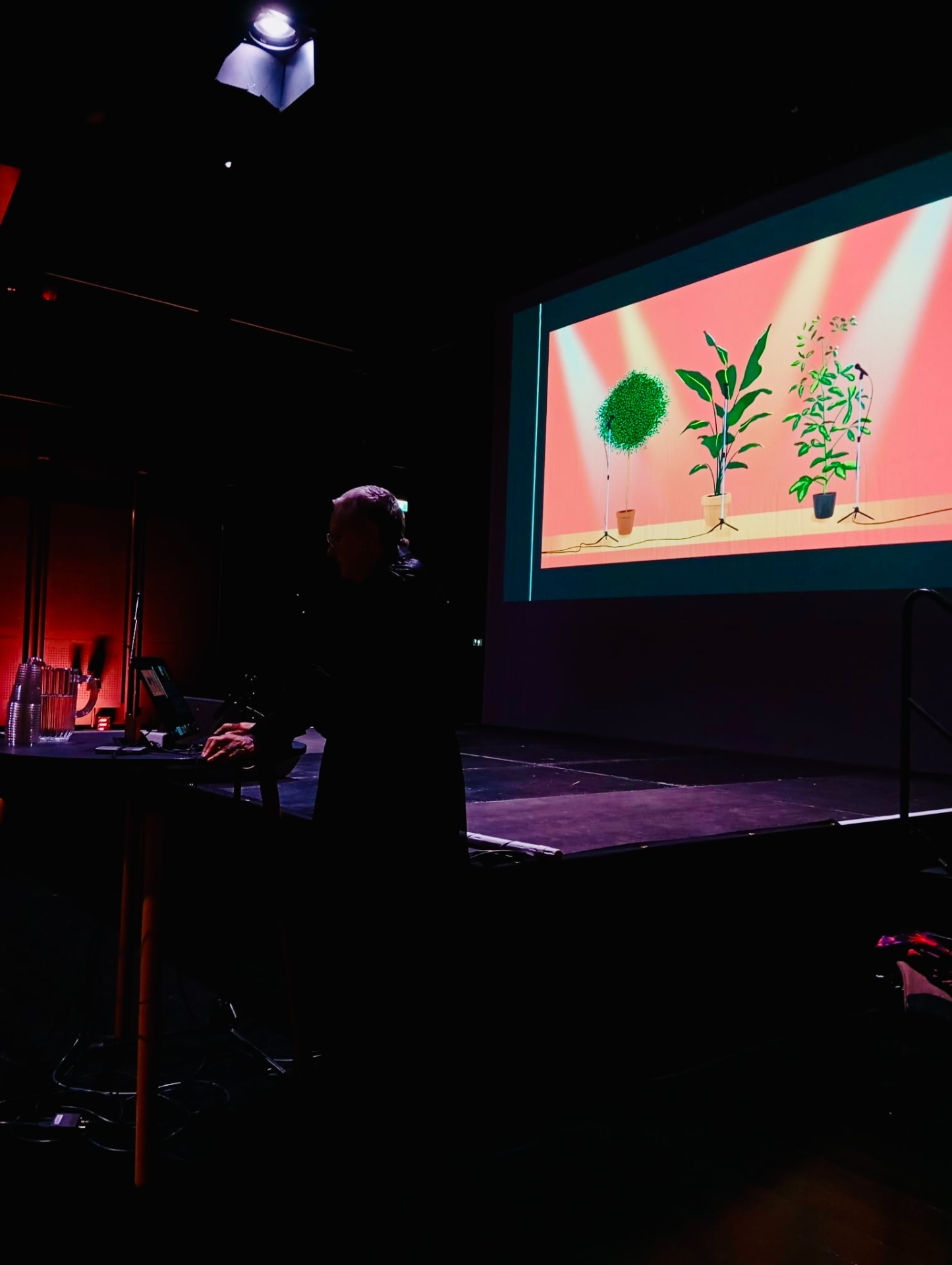 Above: CARPA 9 Conference on "Ecological design and Performance Pedagogies – sustainable practices and interdisciplinary acts in a climate changed world" (2025), UniArts, Helsinki, Finland. Sound performance and paper presentation on: "MYCELIO: Entering into a Sonic Intra-Active Quantum Relation with Plant Life".
